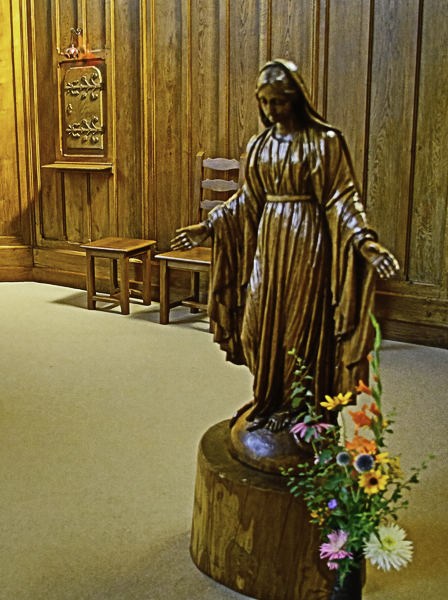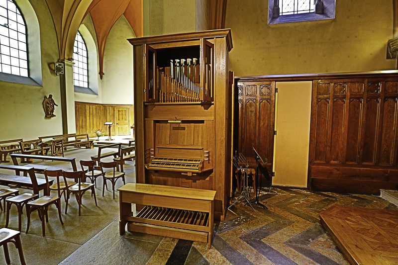 Sur les photos ci-dessous, vous pouvez voir des taches noires. Ce sont des infiltrations d’humidité. De plus, il n’y a plus de chauffage dans la chapelle, car le chauffage au sol est hors services ( il avait environ 40 ans).
